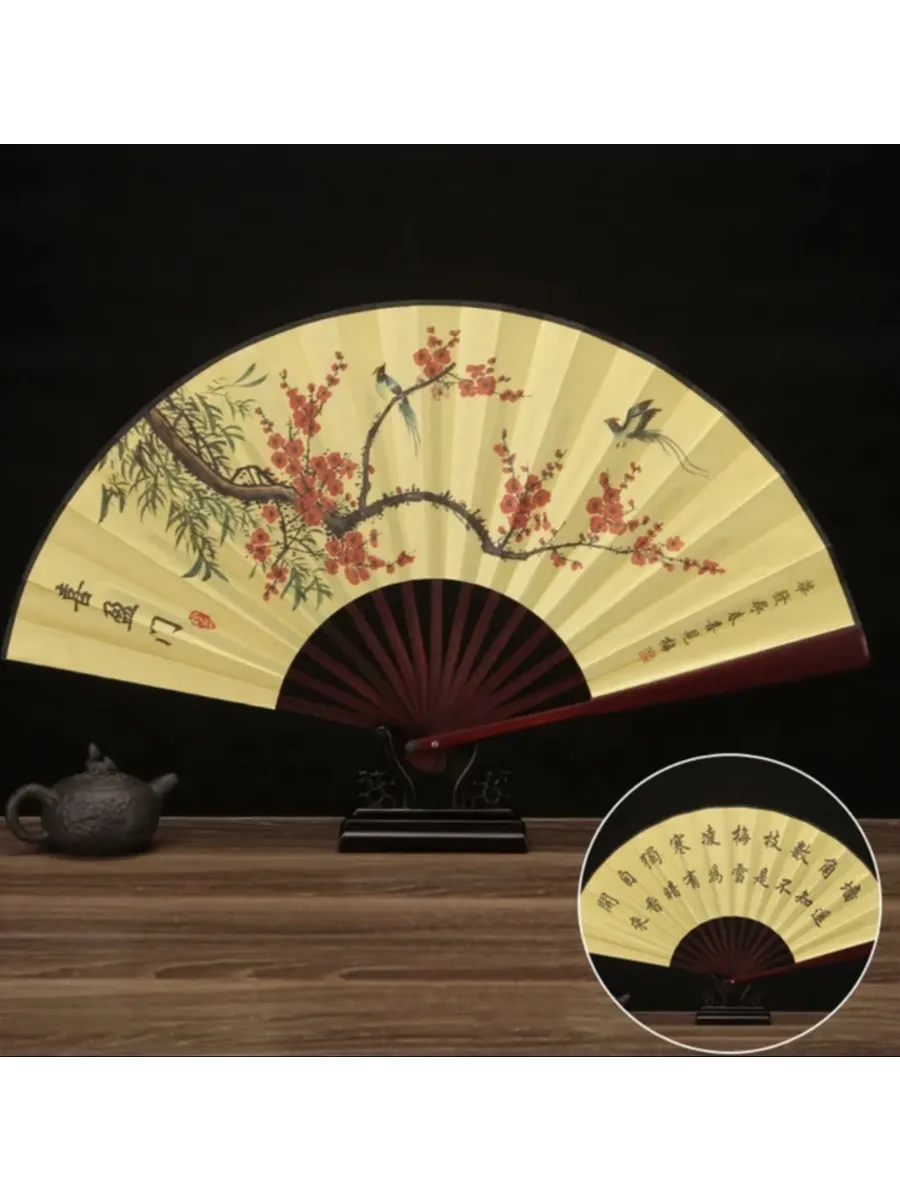 Веер китайский складной на стену с колибри. ИП Романова О.В.