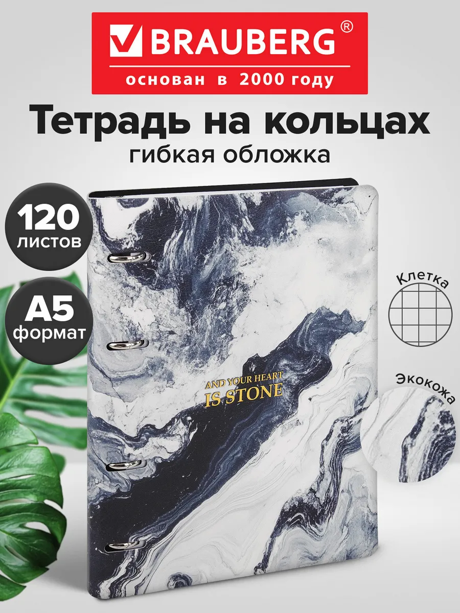 Тетрадь на кольцах А5 в клетку со сменным блоком, 120 листов. САМСОН