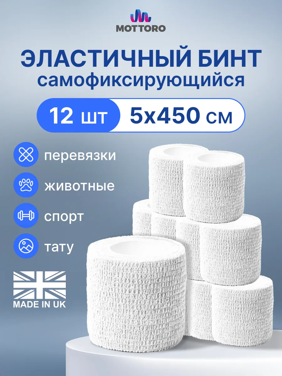 Бинт эластичный лейкопластырь самофиксирующий 5х450см 12 шт. SENSE OF LIFE