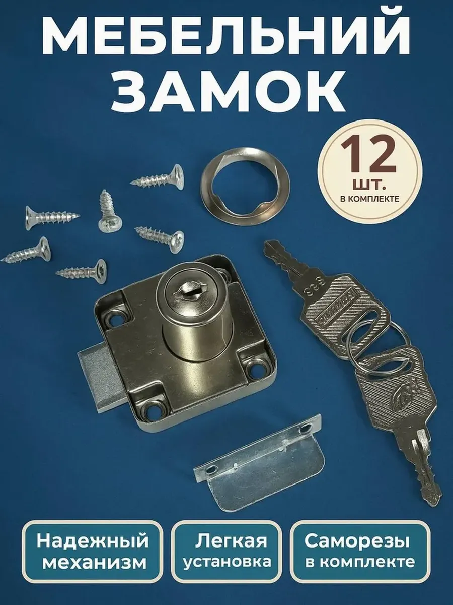Замок мебельный врезной 12 шт. INCOM-FURNITURA