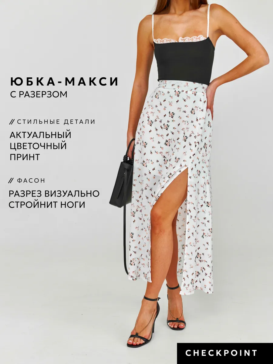 Юбка летняя длинная макси с разрезом. CHECKPOINT