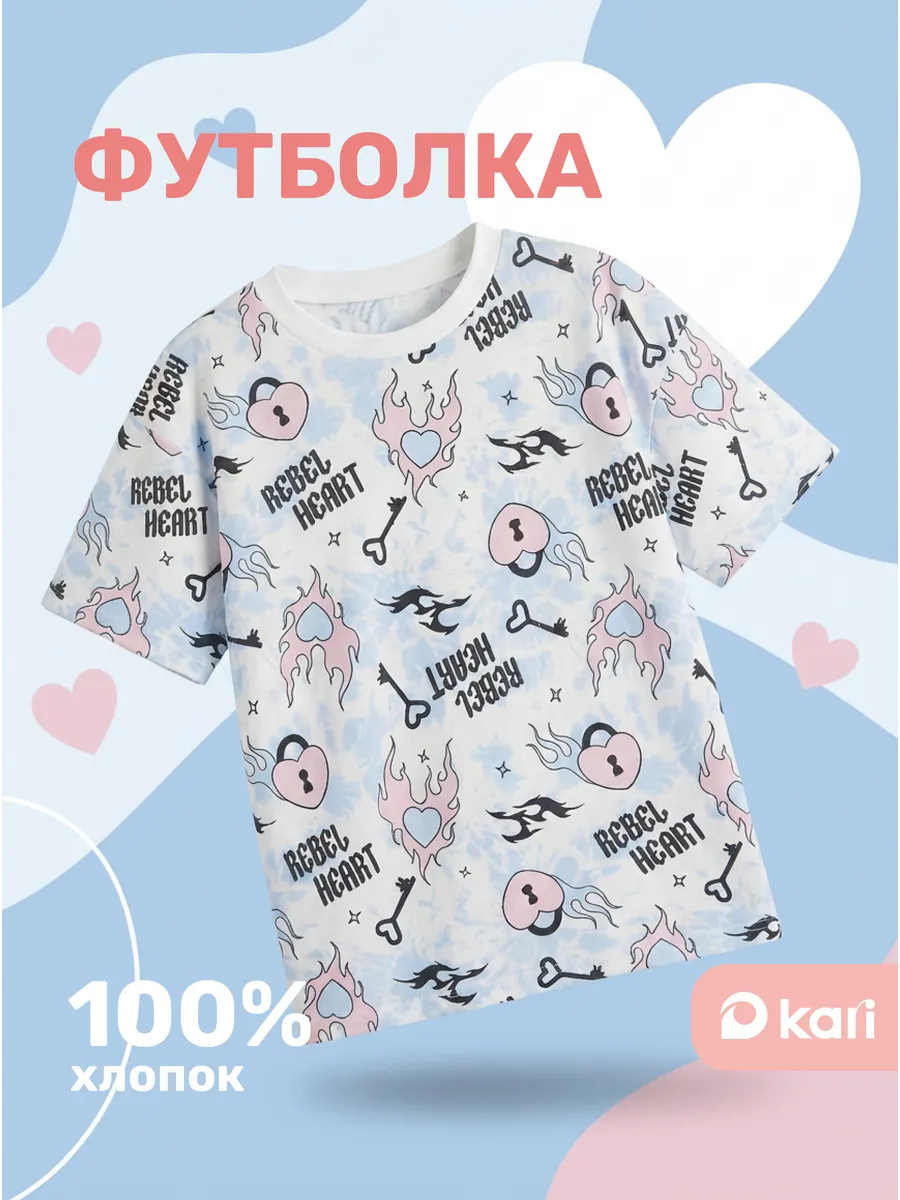 Футболка для девочки оверсайз белая с принтом. KARI