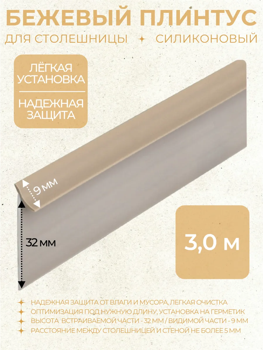 Плинтус для столешницы силиконовый уплотнитель бежевый 3м. СИНКСТОР