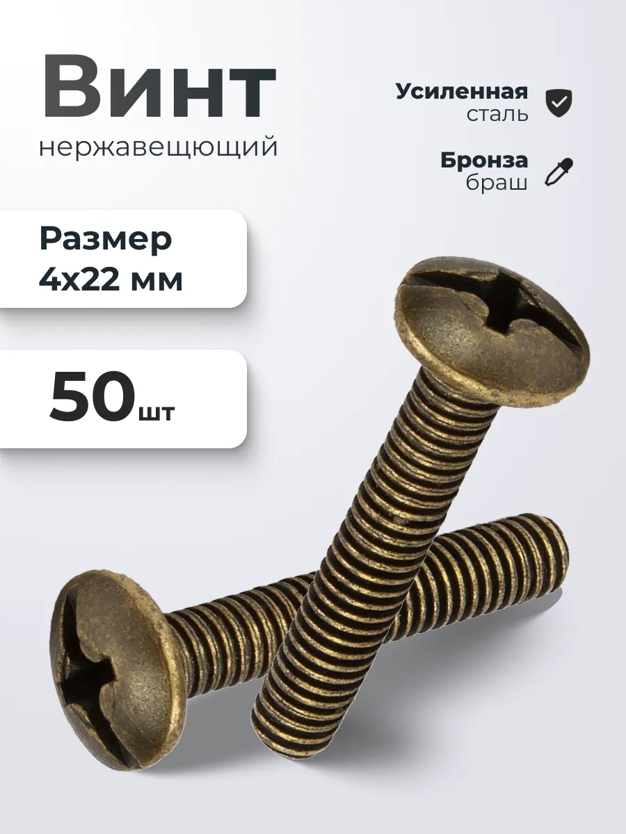 Винт мебельный М4*22 брона 50 шт. ИП Синельщиков В. А.
