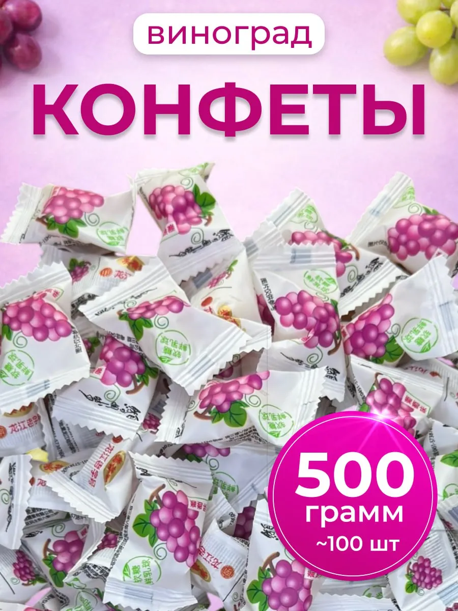 Китайские конфеты сладости со вкусом винограда 500 г — идеальный десерт для семьи и друзей. Конфеты мягкие и ароматные, со вкусом винограда, который понравится взрослым и детям. Пакетик весит 500 г, что достаточно для долгого удовольствия. Подойдут как для повседневного перекуса, так и для праздничного столика.