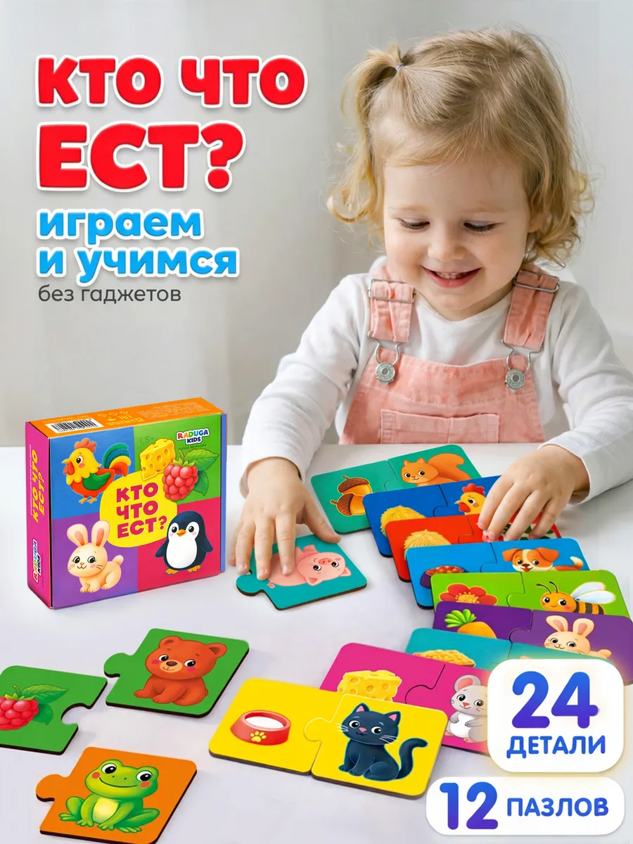 🔥 По акции «Рубли за отзыв» вы сможете вернуть 200 рублей на баланс Wildberries, если оставите отзыв о товаре «Пазлы для малышей Кто Что Ест развивающая игра. Радуга Кидс».