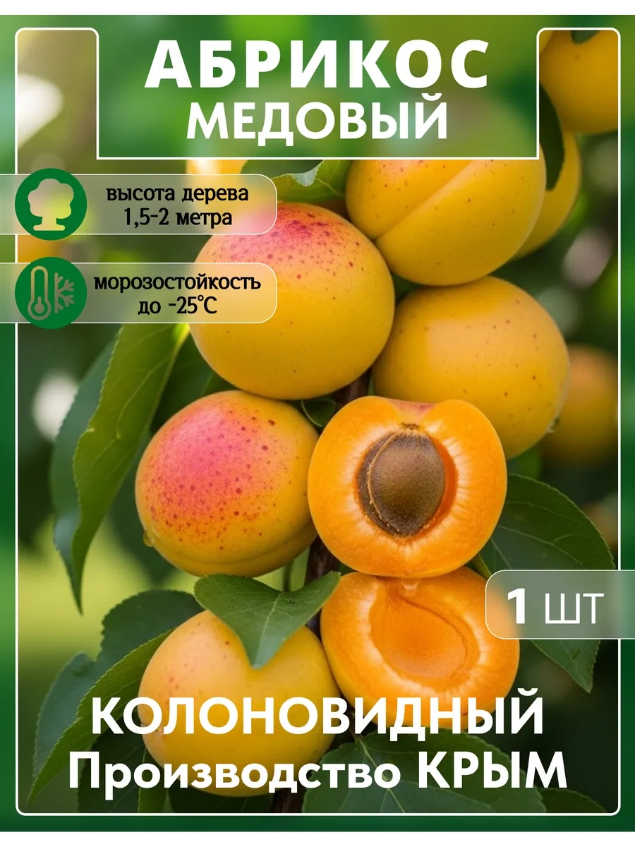 Приглашаем к созданию уютного дачного уголка саженец абрикоса Медовый! Эта колоновидная разновидность станет отличным дополнением к вашему саду, обеспечивая красоту и свежие плоды в сезон. Абрикос Медовый легко поддаётся уходу, что делает его идеальным выбором для семейных дачников. Вы можете посадить его в вашем саду и наслаждаться сладкими плодами вместе с семьёй.