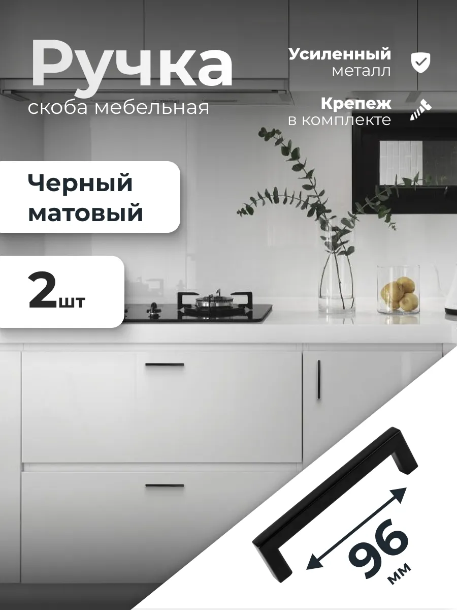 Ручка мебельная 96 мм черная матовая 2 штуки. ИП Синельщиков В. А.