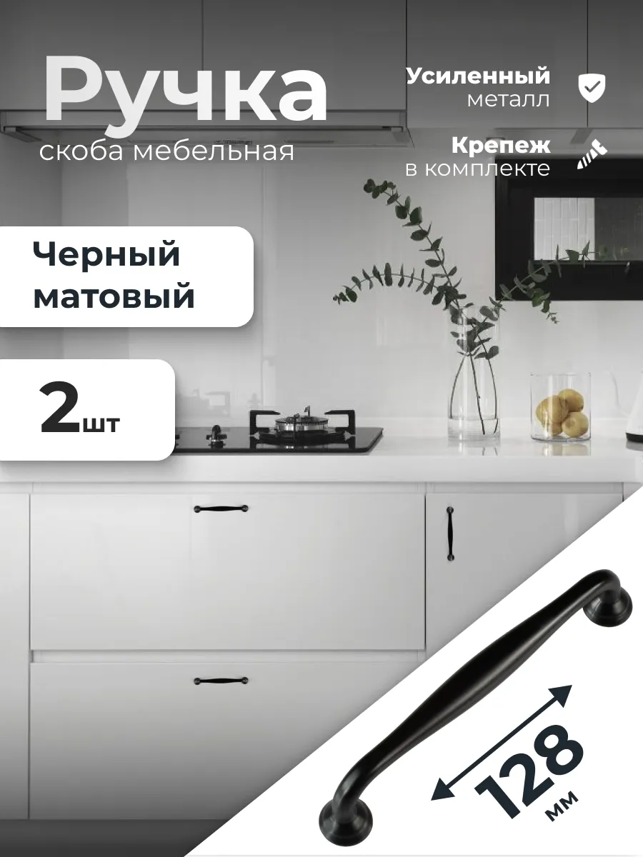 Ручка мебельная скоба 128 мм черная матовая 2 штуки. ИП Синельщиков В. А.