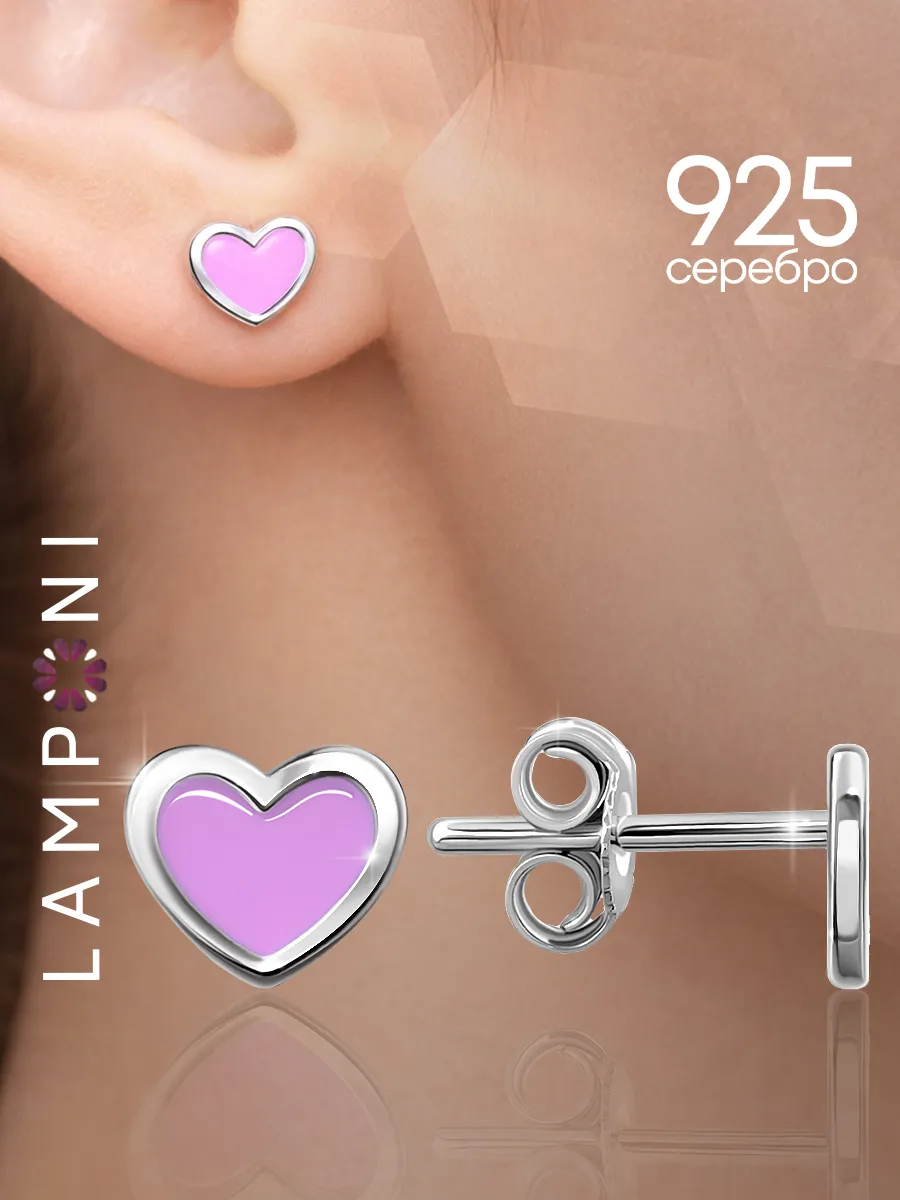 Серьги серебро 925 пробы гвоздики сердечки. LAMPONI