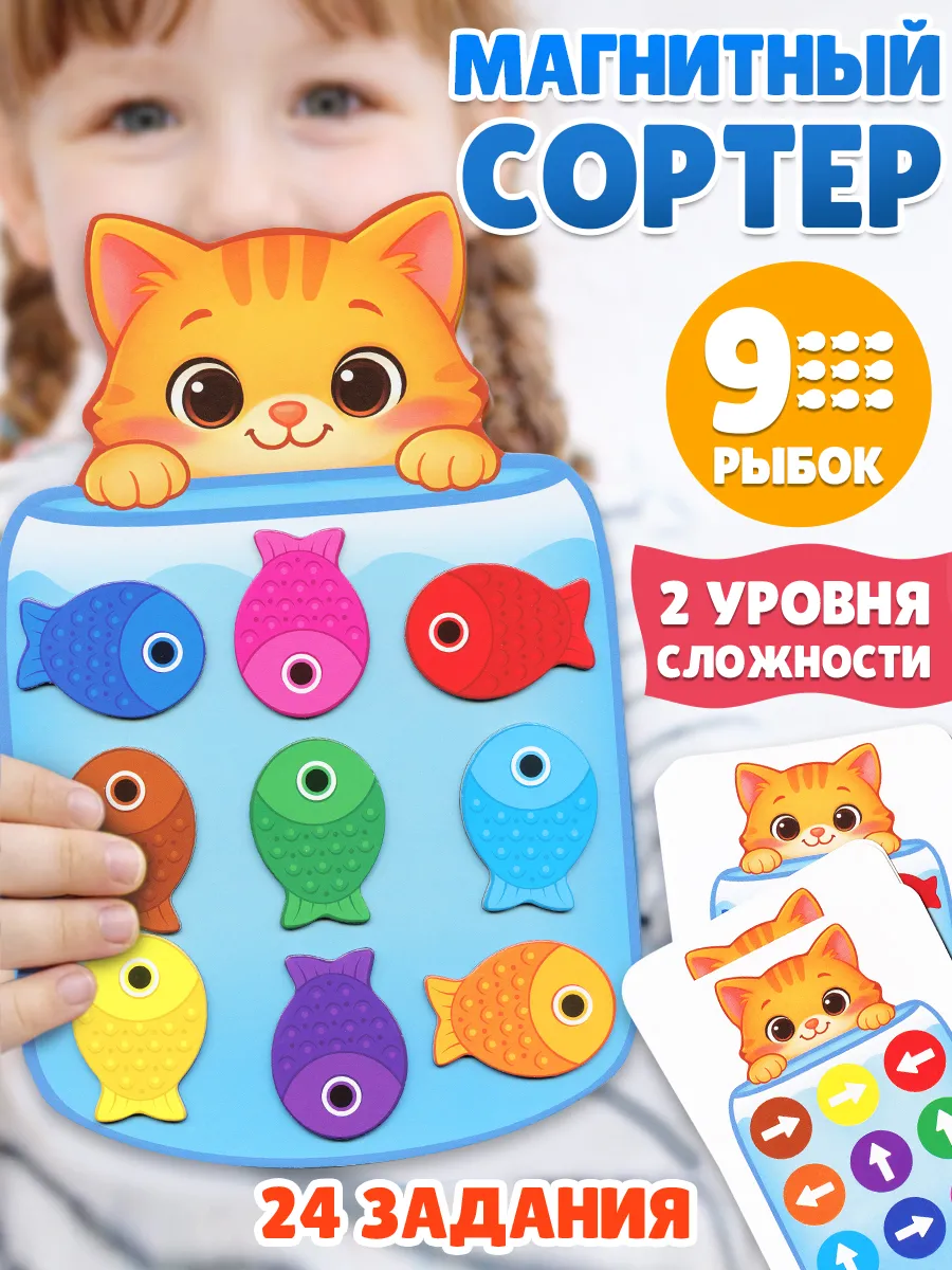 Магнитная игра Котик и рыбки — идеальный подарок для маленьких детей, способствующий развитию их моторики и воображения. Игрушка состоит из магнитов в форме котов и рыбок, которые можно расставлять и переставлять на специальной доске. Это простой и увлекательный способ провести время с детьми и развить их креативность.
