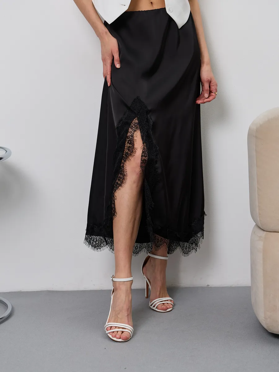 Юбка атласная с кружевом миди. Магазин ULTRA