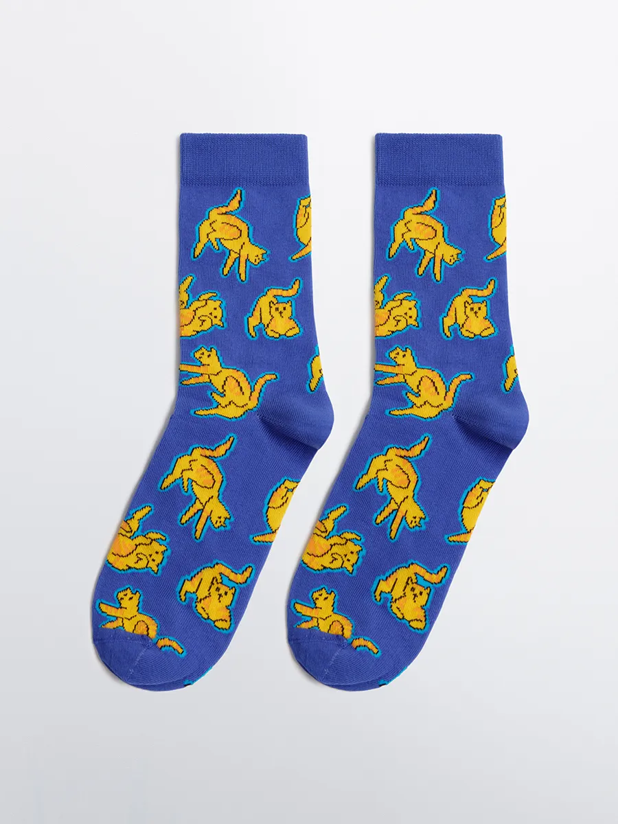 Носки высокие с оригинальным принтом — отличное дополнение к вашему гардеробу. Уютные и теплые, они подойдут как для повседневной носки, так и для использования в качестве аксессуара. Принт сделает вашу одежду более яркой и интересной.