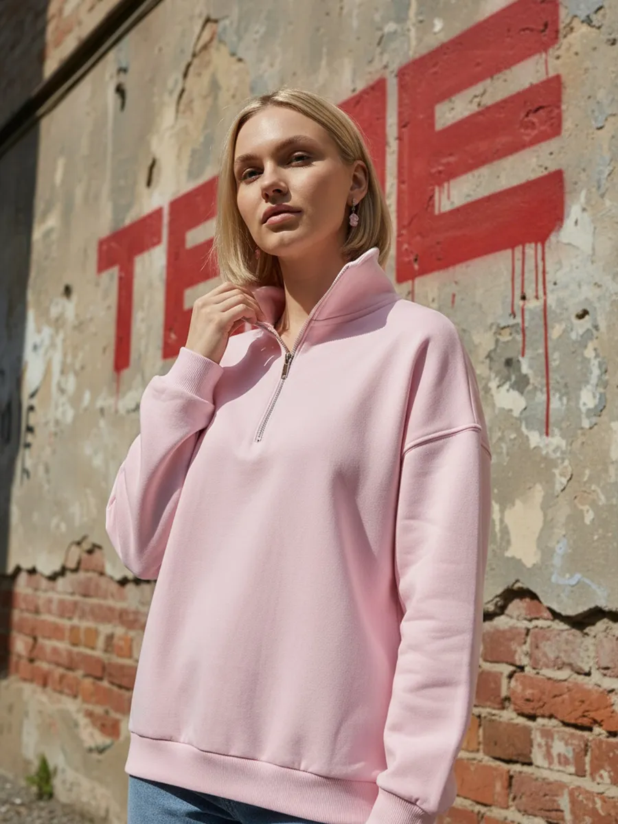 Теплая толстовка оверсайз с полузамком и начесом. ТВОЕ