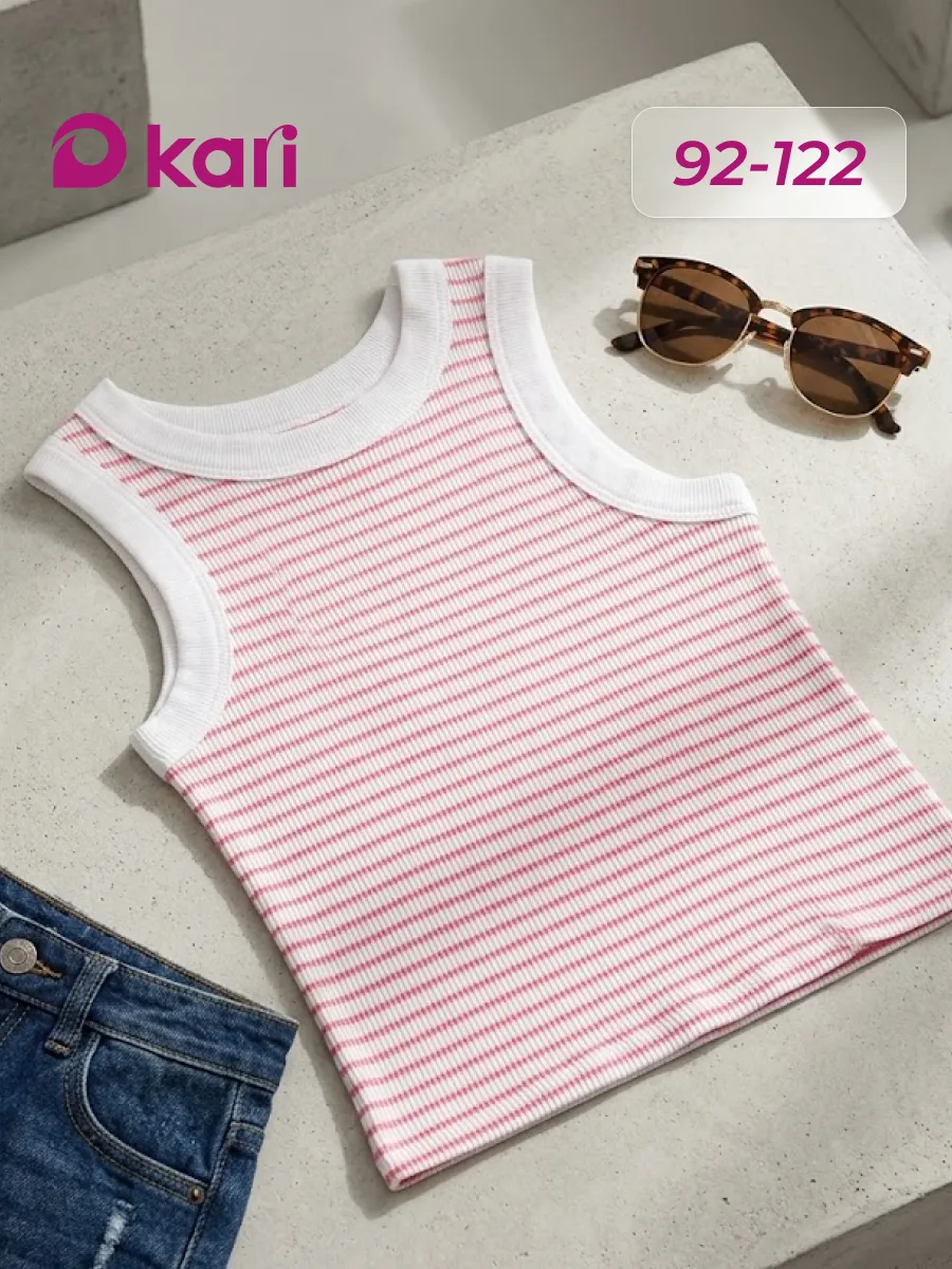 Летний топ для девочки в рубчике — идеальный вариант для жаркого сезона. Мягкое и удобное полотно, комфортно лежит на коже. Рубчик добавляет стиль и фигурность, делая этот топ идеальным выбором для повседневной одежды или для игр с друзьями. Подходит для девочек с 3 до 12 лет.