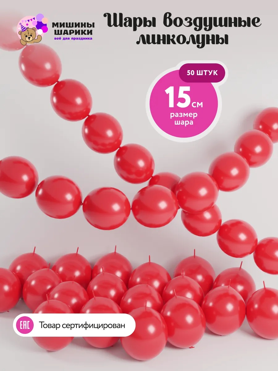 Главная / Шарики и упаковка / Линколуны красные 15 см 50 шт. ООО Гармония
