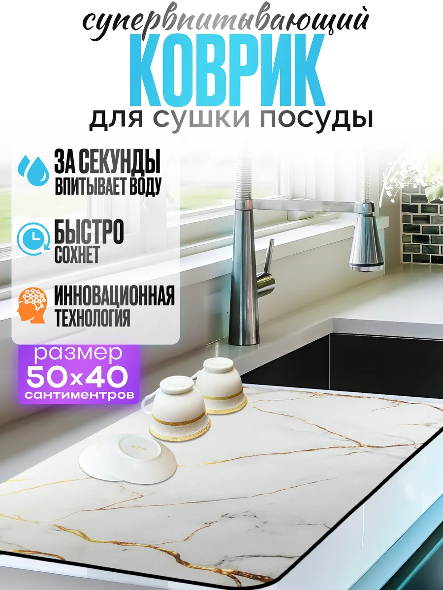 Нано коврик для сушки посуды впитывающий. AlGul