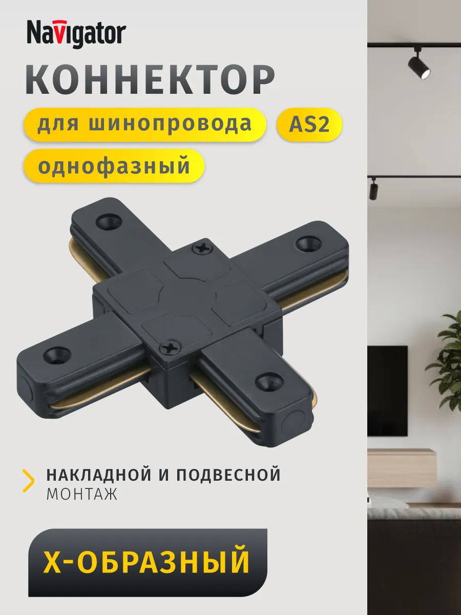 Коннектор X-образный для однофазного шинопровода AS2 черный. Официальный магазин Navigator Group