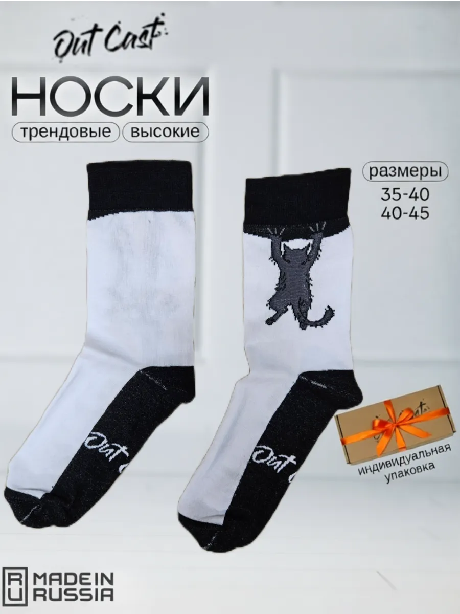 Высокие прикольные носки с принтом висящего кота. НОСОЧЕЧНАЯ