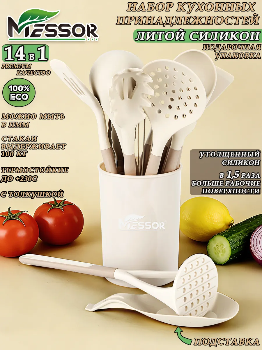 Набор кухонных принадлежностей из силикона Messor — идеальный выбор для любой хозяйки! Силicone набор включает в себя 14 различных предметов, которые сделают приготовление пищи более удобным и комфортным. В наборе есть формы для выпечки, скребки, отрезчики и многое другое. Это идеальный подарок для любимой домохозяйки или просто для себя! Мягкий и нескользкий силикон позволяет легко чистить и хранить принадлежности.