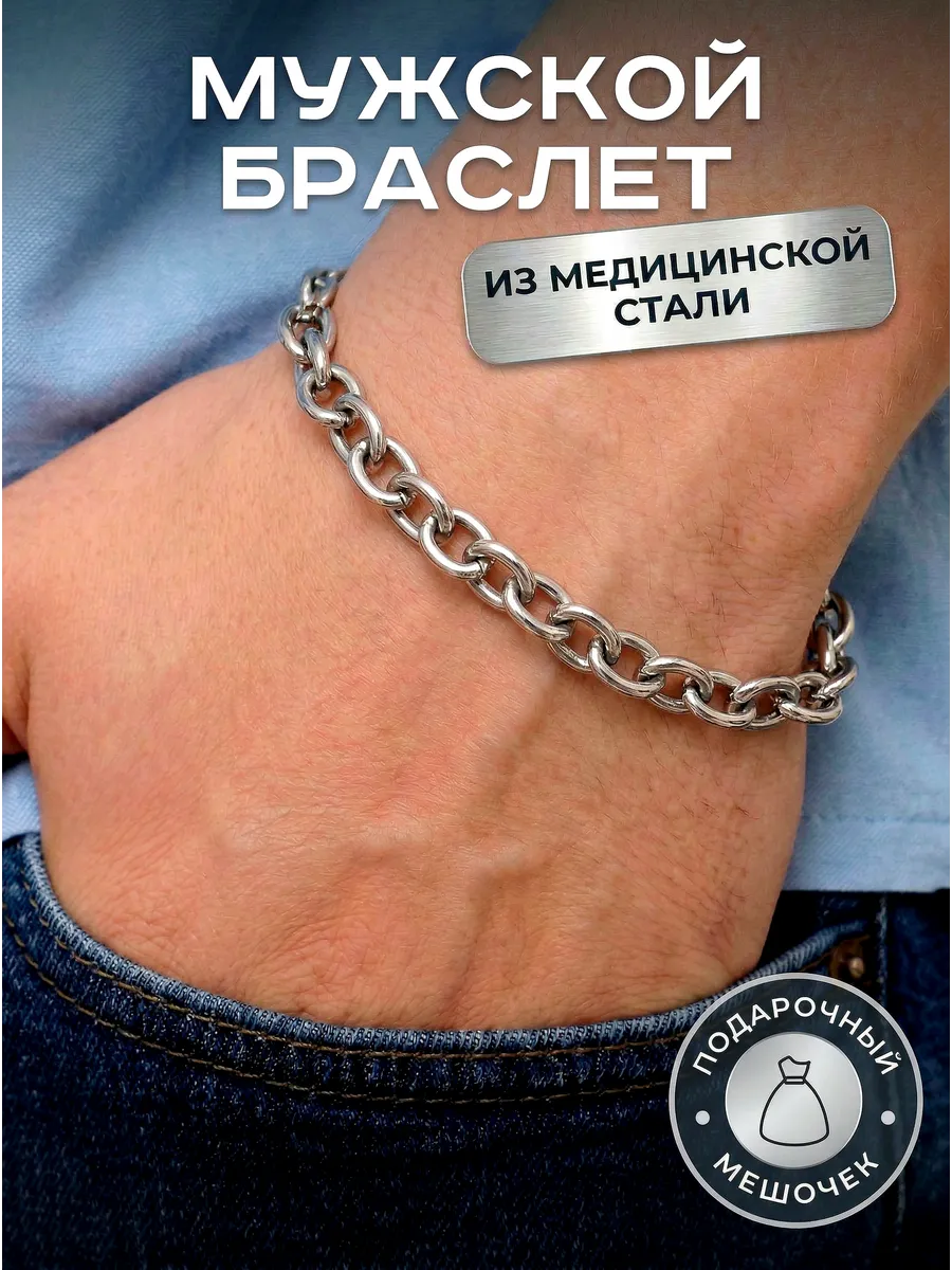 Браслет стальной на руку цепь под серебро. JEWELLMAN