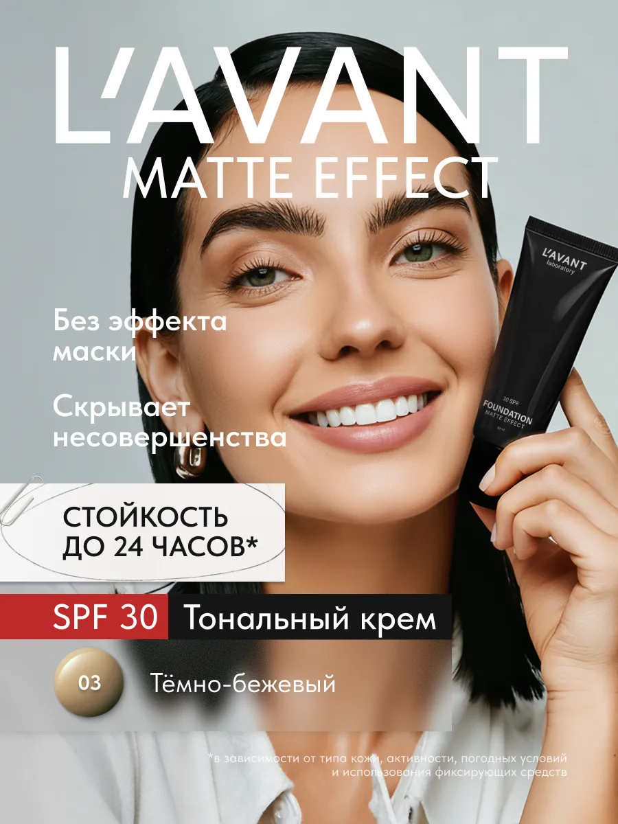Тональный крем для лица стойкий с spf 30, тон 3. Beauty Lab