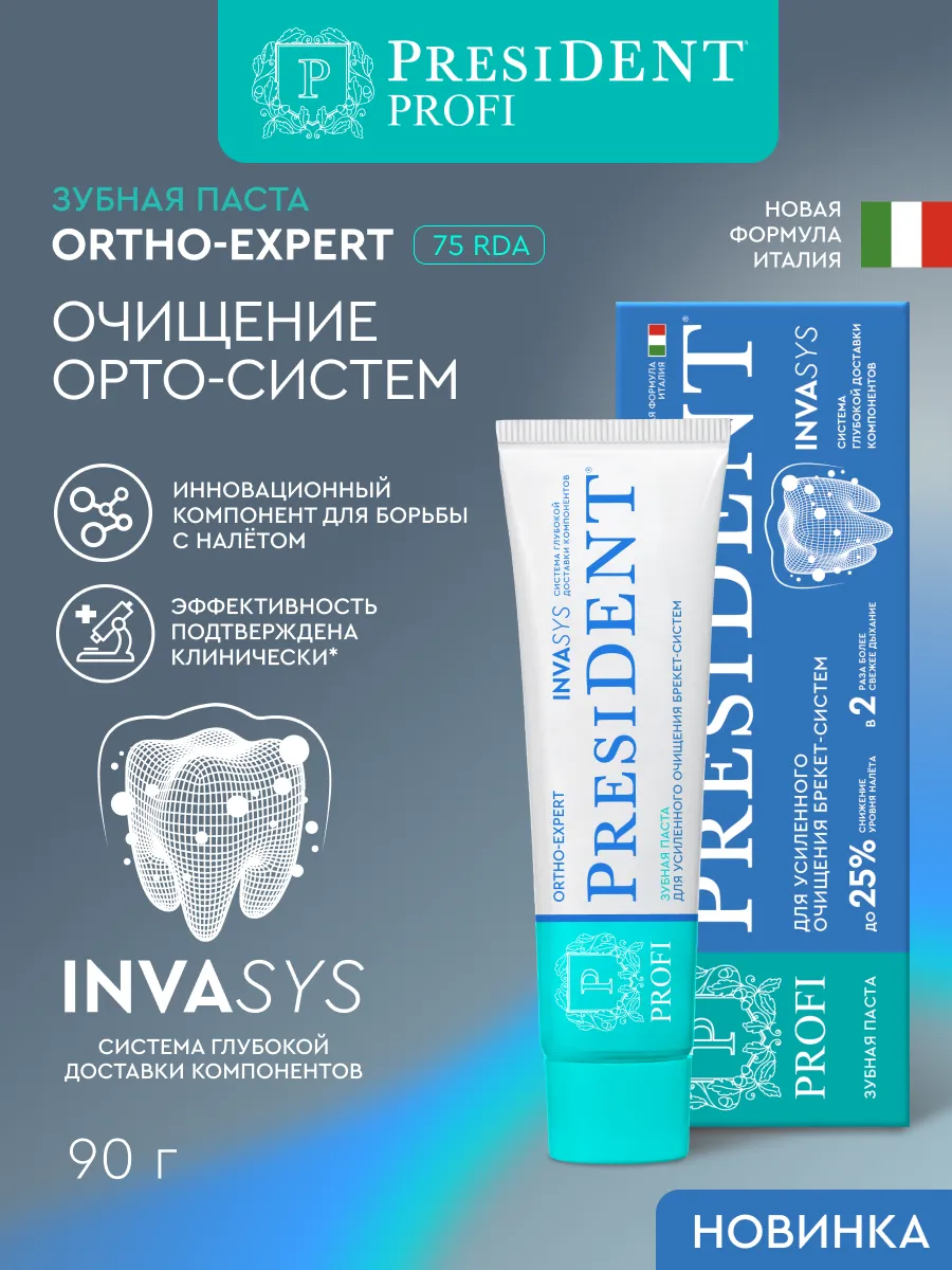 Зубная паста для брекетов PROFI ORTHO-EXPERT (RDA 75) 90 г. PRESIDENT