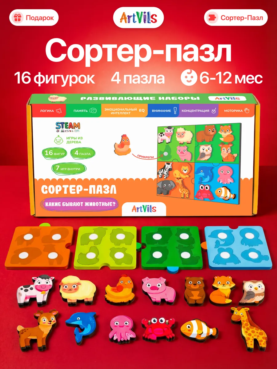 🔥 По акции «Рубли за отзыв» вы сможете вернуть 255 рублей на баланс Wildberries, если оставите отзыв о товаре «Развивающая игрушка сортер для малышей Монтессори. ARTVILS — вдохновение для семейного творчества».