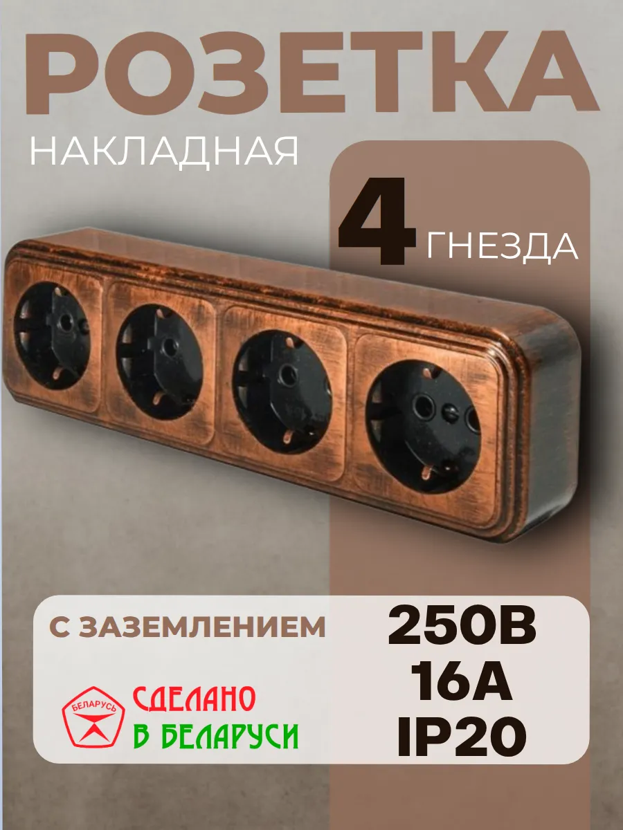 Главная / Розетки и выключатели / Розетка накладная с заземлением четыре гнезда. Прогресс