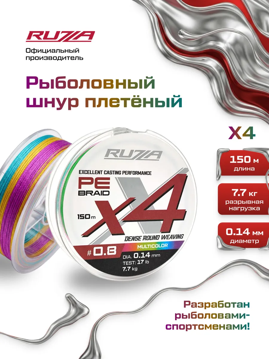 Шнур X4 150м Multicolor 0,14мм 7,7кг 17lb. F-Fishing