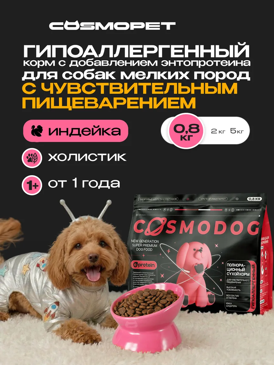 🔥 По акции «Рубли за отзыв» вы сможете вернуть 800 рублей на баланс Wildberries, если оставите отзыв о товаре «Корм сухой для собак для мелких пород с чувствительным пищев…. COSMOPET».