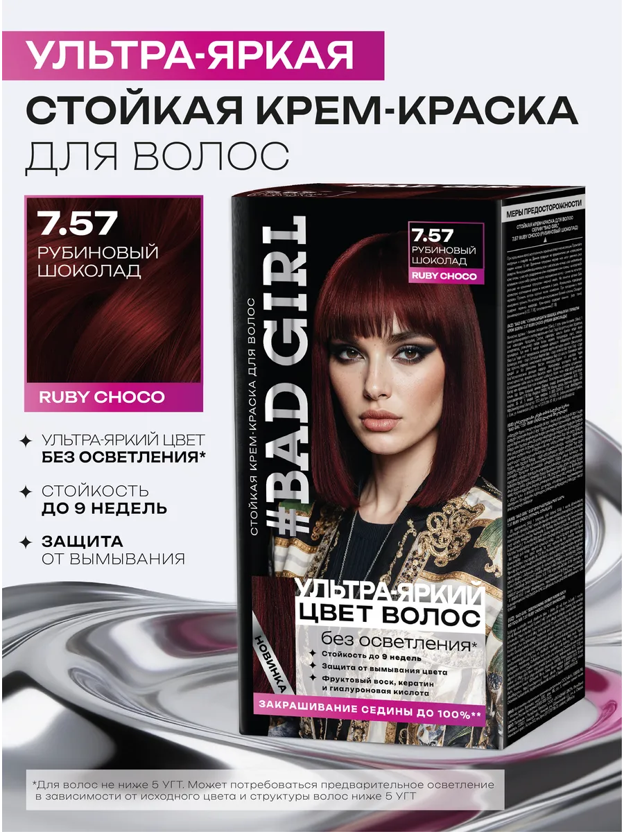 Мастерская красок для волос B!G представила новый оттенок 7.57 Ruby Choco — румянец, напоминающий красный шоколад. Эта краска идеально подходит для создания глубокого, богатого цвета, который станет отличным дополнением к любой причёске. Ruby Choco можно использовать для создания мягкого, натурального цвета или более глубокого, интенсивного цвета, в зависимости от желаемого результата. Этот продукт подойдет для тех, кто ищет простое, но эффективное решение для окрашивания волос.