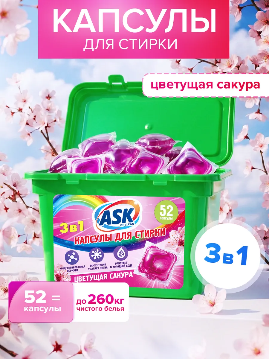 Улучшите процесс стирки и сделайте его более эффективным с помощью Капсул для стирки ASK OF CLEAN цветущая сакура. Эти капсулы предназначены для удаления пятен и запахов, оставляя ваши одежды свежими и чистыми. Они подходят для машинной стирки и могут помочь вам сохранить цвет и структуру ваших одежд. Подойдут для семей, где важно поддерживать чистоту и порядок в доме.