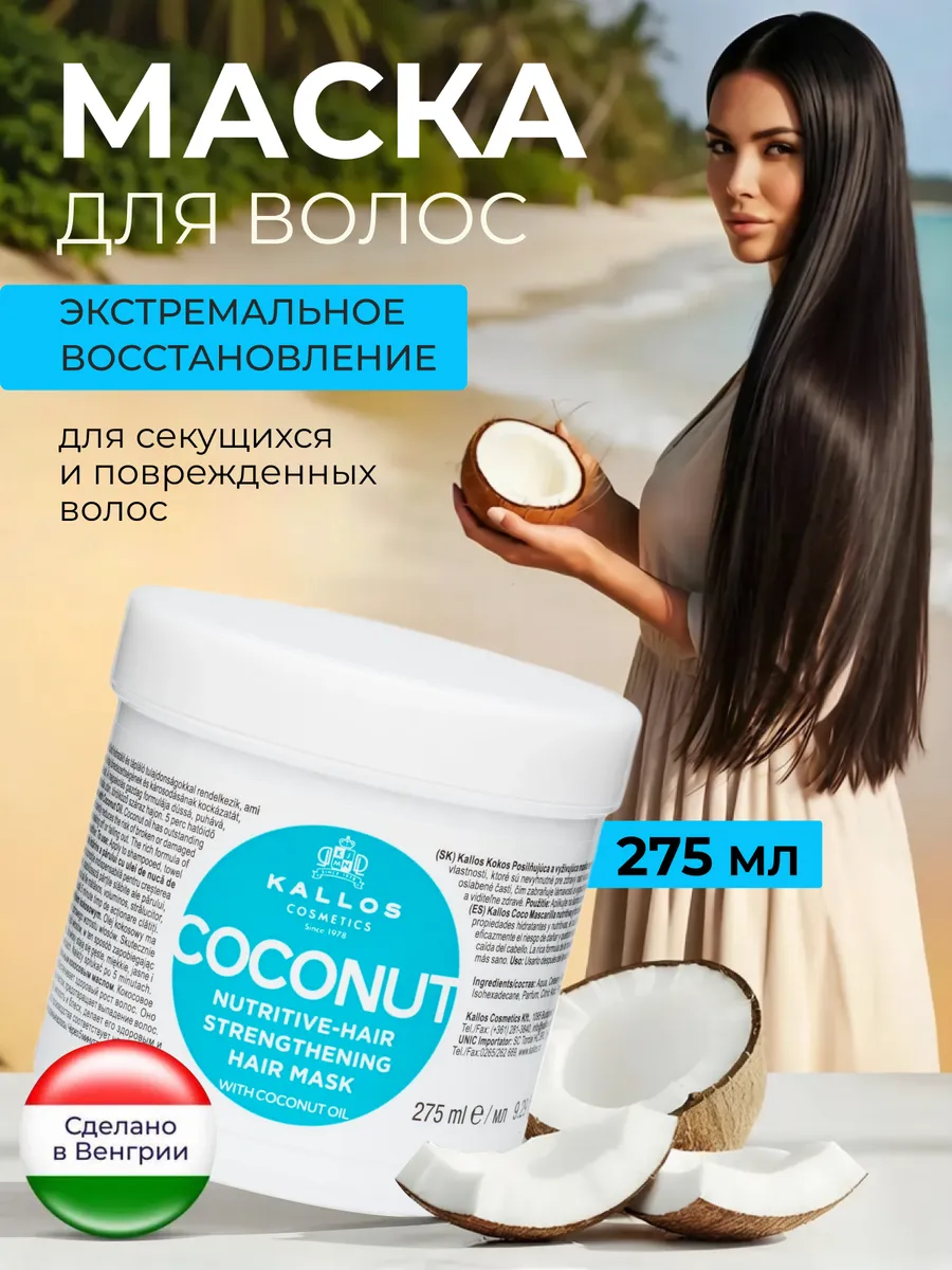 Маска с кератином Kallos кокос увлажняющая и питательная. KALLOS VOLGA