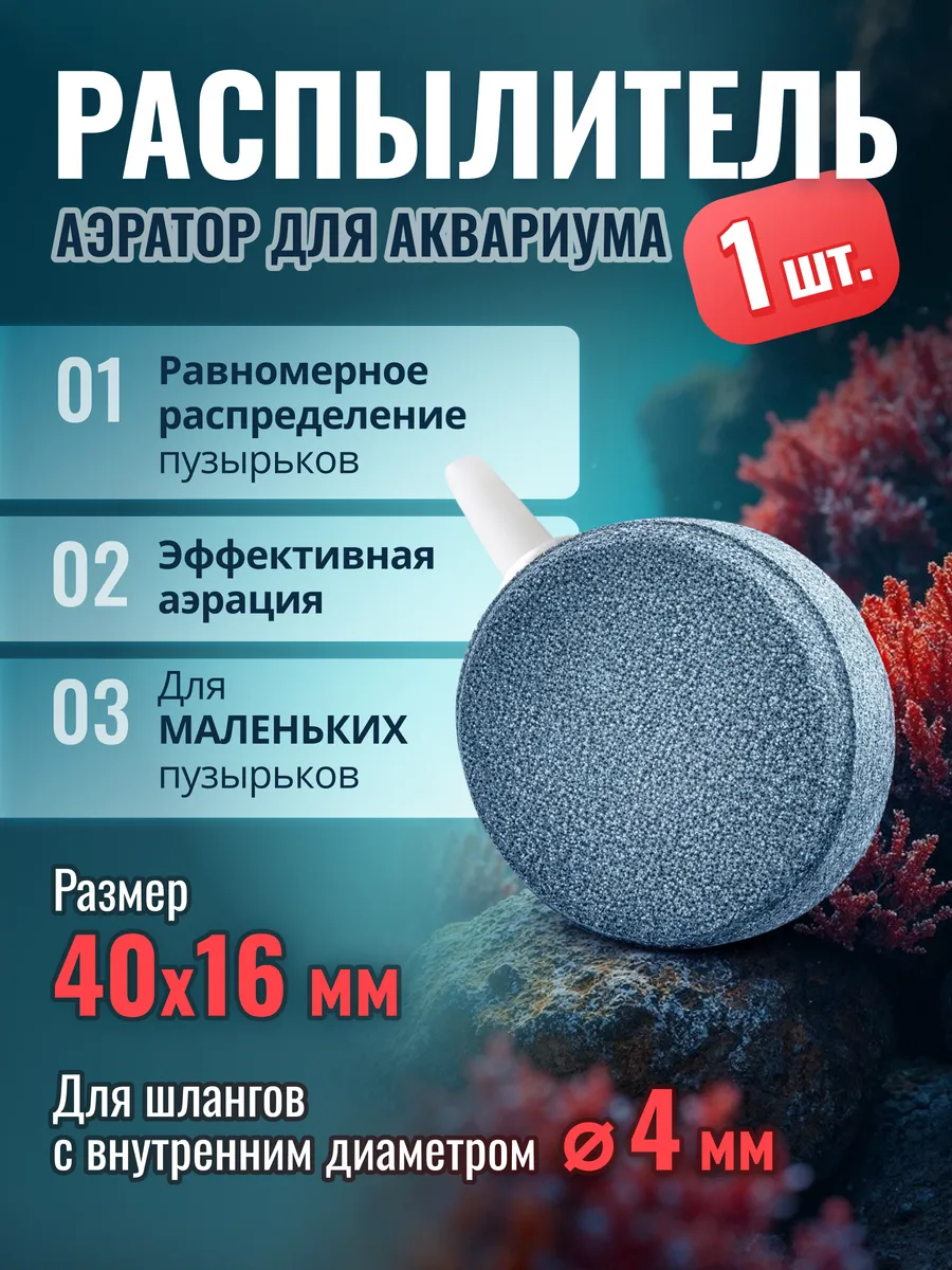 Главная / Фильтрация, терморегуляция, освещение / Аквариумный распылитель 1шт, аэратор в форме диска 40х16мм. MaxStore!