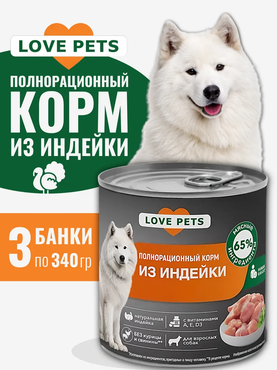 Для счастливых собак и их владельцев — корм из индейки Love Pets. Влажный корм обеспечит вашему питомцу сбалансированное питание, поддержит его здоровье и радость. Преимущества: сбалансированное питание, высококачественные ингредиенты, удобная упаковка. Подходит для собак всех пород и возрастов.