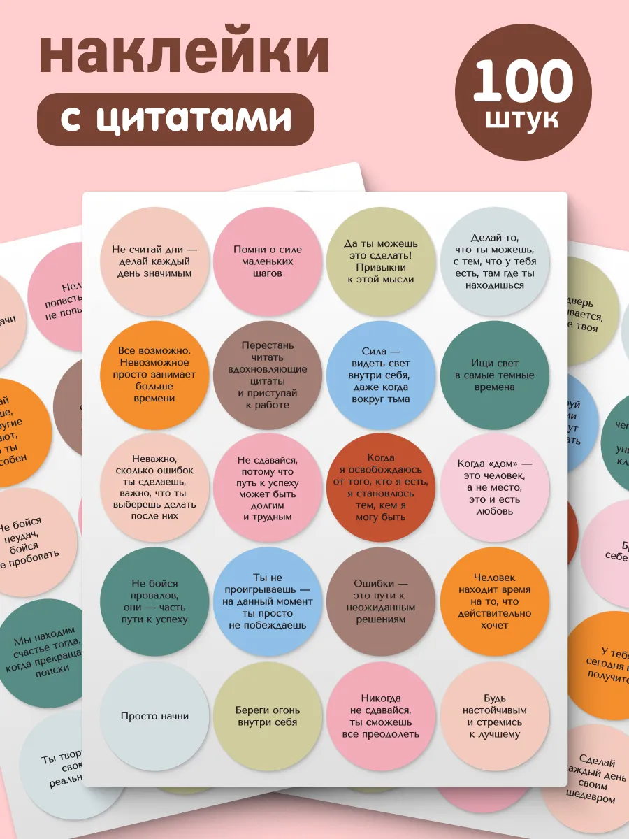 Круглые наклейки на стаканы с надписями мотивационные. Flevo