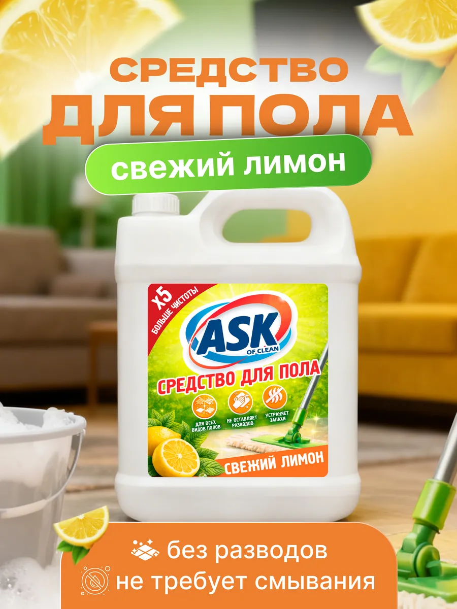 Средство для мытья полов с ароматом «Свежий лимон» 5 литров. Вертекс