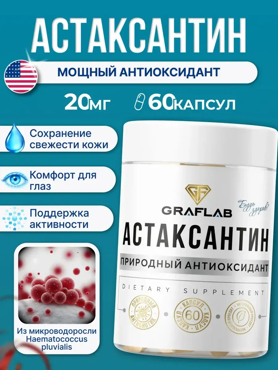 Астаксантин 20 мг натуральный 60 капсул. GRAFLAB