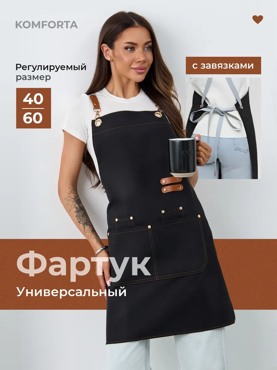 Практичный фартук для кухни с карманами, чтобы хранить необходимые ингредиенты и кухонные принадлежности. Фартук из удобного и долгопользовательного материала, который легко моется и не деформируется. Подходит для семейных женщин, которые ценят удобство и организованность на кухне.