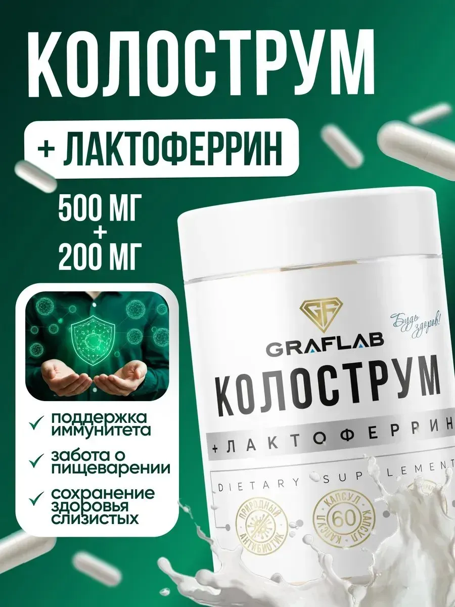 🔥 По акции «Рубли за отзыв» вы сможете вернуть 500 рублей на баланс Wildberries, если оставите отзыв о товаре «Колострум + Лактоферрин Молозиво 60 капсул. GRAFLAB».