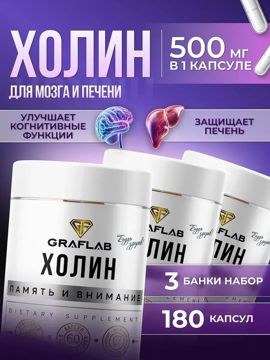 Холин 500 мг — незаменимый витамин для поддержки здоровья мозга и сердца. В каждой капсуле содержится 500 мг холина, а также витамин В4, который помогает улучшить метаболизм жиров. Это идеальный продукт для тех, кто следит за своим здоровьем и хочет поддержать функции мозга и сердца. Подойдет для тех, кто ищет способ улучшить свое здоровье и благополучие.