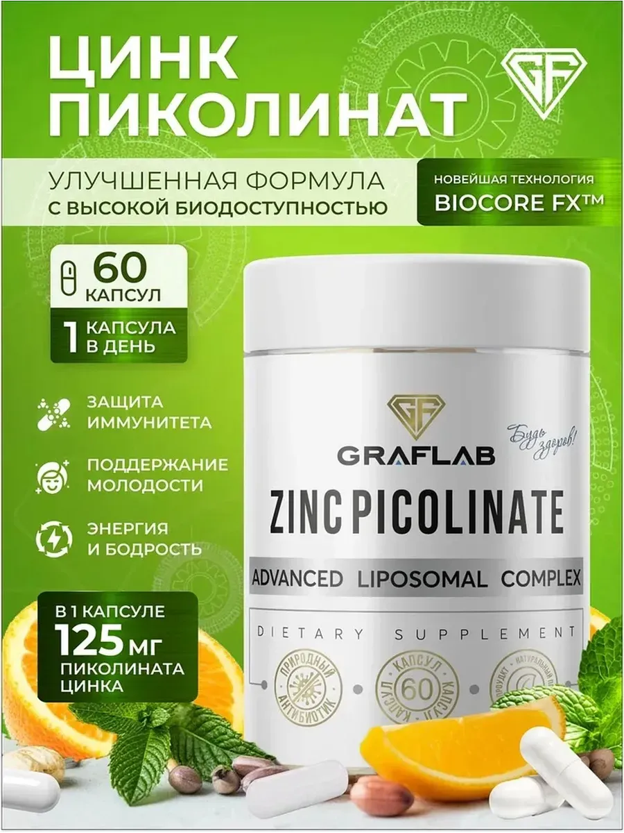 Поддержка иммунитета и здоровья с помощью цинка. Цинк пиколинат 125мг в форме капсул, всего 60 штук. Это средство может помочь укрепить иммунную систему, улучшить кожу и волосы. Подходит для тех, кто ищет естественный способ поддерживать здоровье.